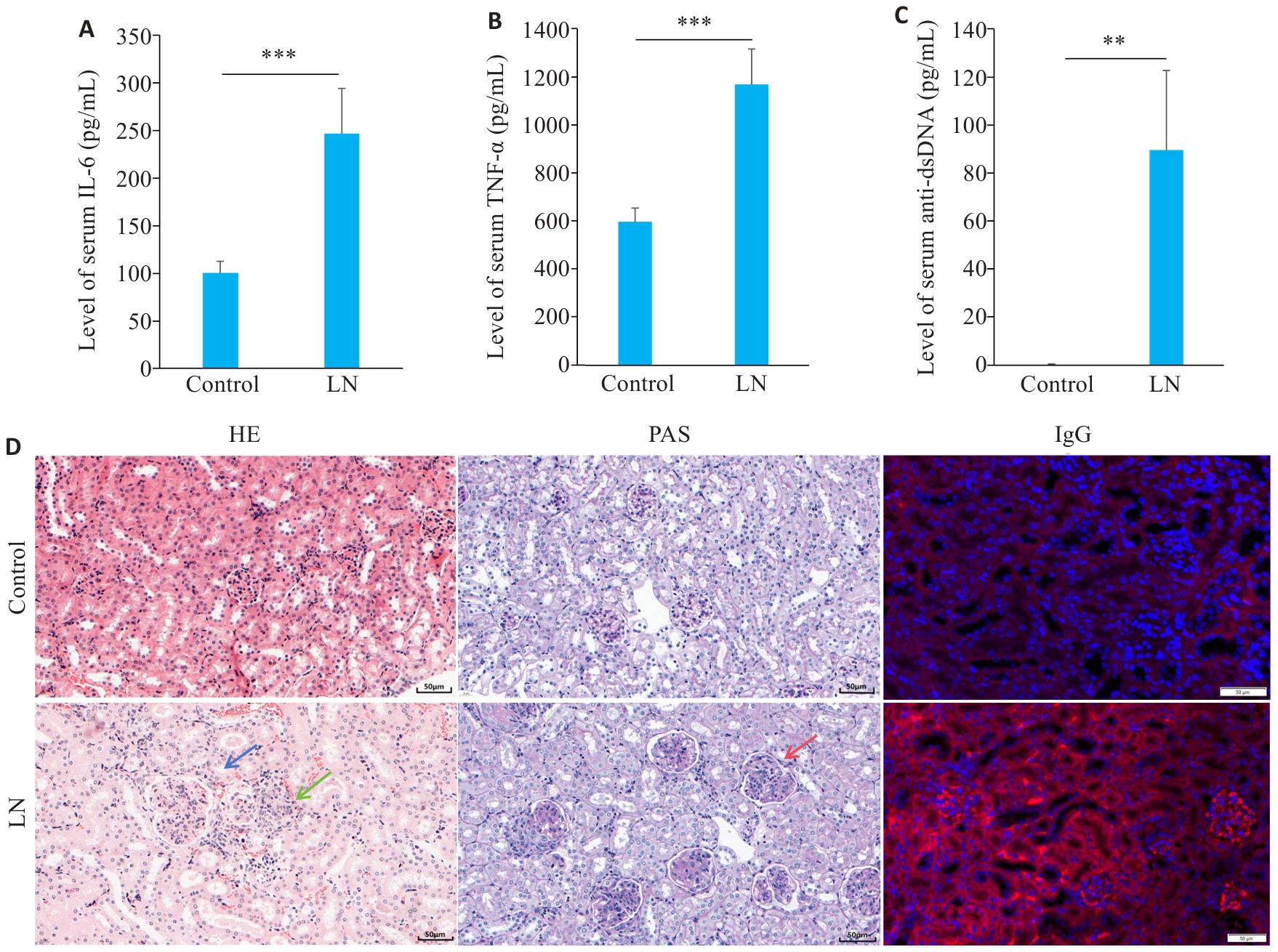 关键词: 狼疮性肾炎, 内质网应激通路, 凋亡, GRP78, CHOP, PERK/IRE1α