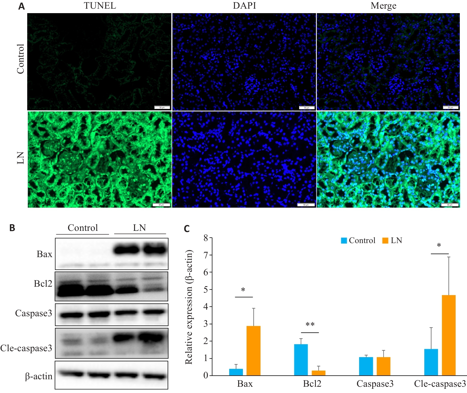 Key words: lupus nephritis, endoplasmic reticulum stress pathway, apoptosis, GRP78, CHOP, PERK/IRE1α