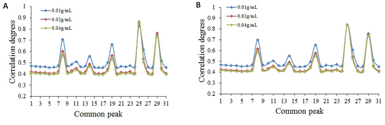 Objective To construct a GA-BP neural network model based on the spectrum-effect relationship of Cassia seeds extract and test its performance for quality control of Cassia seeds using spectrum-effect score. Methods The HPLC fingerprints of Cassia seeds extract (0.1, 0.2, and 0.4 g/mL) were established. In a mouse model of 5-Fu-induced liver injury treated with 0.4, 0.8, and 1.6 g/kg of Cassia seeds extract, the pharmacodynamics parameters were measured to calculate the comprehensive efficacy using AHP-EWM. A GA-BP neural network model between the fingerprints and comprehensive efficacy was constructed, and the corresponding predicted comprehensive efficacy was obtained. The spectrum-effect relationship between the fingerprints and the measured and predicted comprehensive efficacy was established using grey correlation method followed by Gaussian fitting analysis. The spectral efficiency score was calculated using the relative peak area of the fingerprints and the correlation degree of the spectral efficiency. The reliability of the data was tested using the Z-ratio score method. The limit range of the spectral efficiency score was determined and the quality of the verification samples was evaluated. Results The error between the predicted value using the GA-BP neural network model and the measured value of the comprehensive efficacy was less than 0.2. Gaussian fitting analysis showed good fitting between the spectrum-effect relationship data of the measured and predicted comprehensive efficacy. The limit of the spectral efficiency score was 6.16-7.30. The prediction results for each verification group were consistent with the experimental results and within the limit of spectral efficiency score, and the results of Z-ratio score analysis demonstrated good data reliability. Conclusion The GA-BP neural network model can effectively predict the comprehensive efficacy of Cassia seeds extract, and the established spectrum-effect scoring method can be used for quality evaluation of samples.