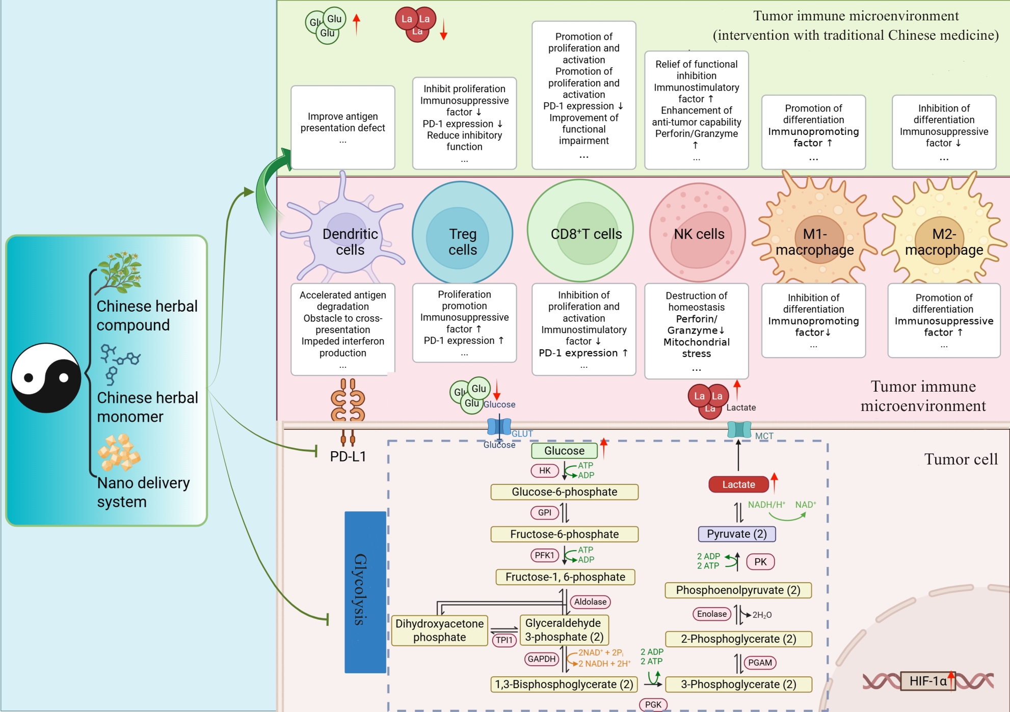 Songqi HE, Yang LIU, Mengchen QIN, Chunyu HE, Wentao JIANG, Yiqin WANG, Sirui TAN, Haiyan SUN, Haitao SUN. Traditional Chinese medicine for regulating glycolysis to remodel the tumor immune microenvironment: research progress and future prospects[J]. Journal of Southern Medical University, 2025, 45(10): 2277-2284.