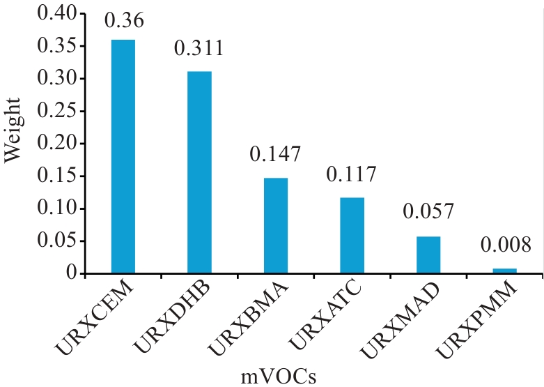 图3 WQS模型正向回归mVOCs混合物与MASLD的权重图