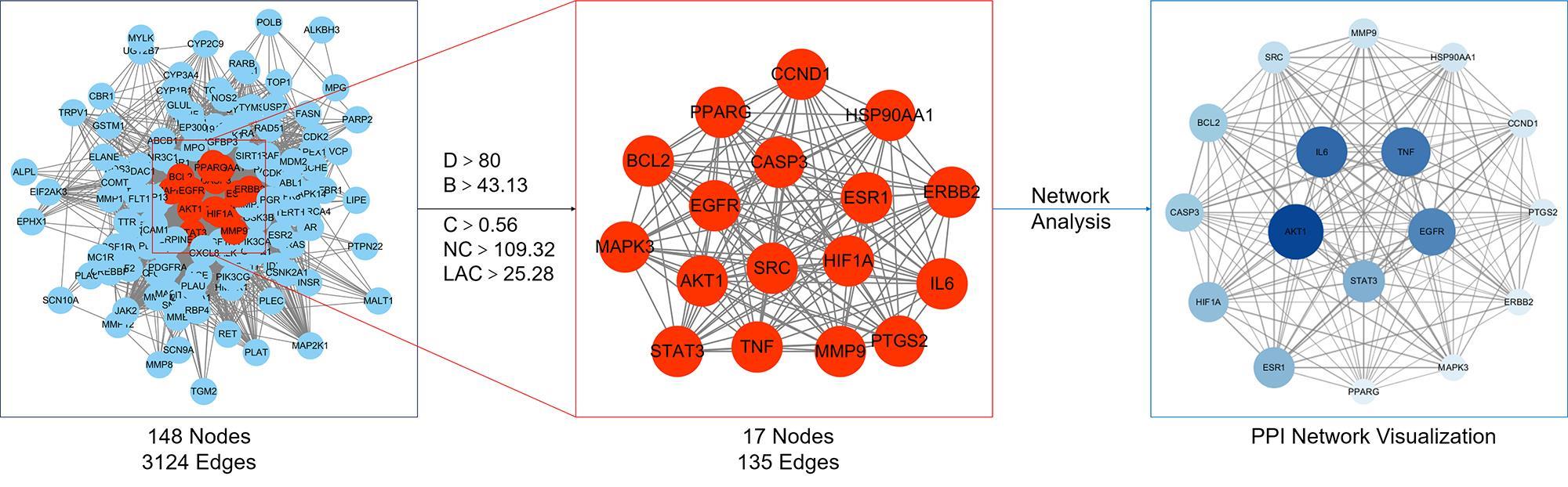 | Number | Mol ID | Active ingredient | Degree | Betweenness centrality | Closeness centrality |