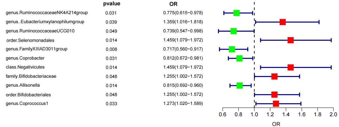| genus.Eubacterium xylanophilum group | CRC | MR-Rgger | 4.699 | 9 | 0.860 |