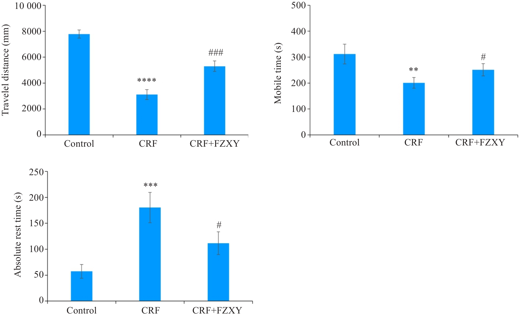 Fig.10 Comparison of open field test and tail suspension test of mice in different groups. **P<0.01, ***P<0.001, ****P<0.0001 vs Control group; #P<0.05,###P<0.001 vs CRF group.