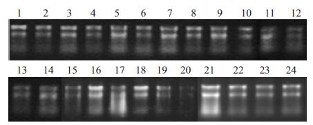 图 1 总RNA琼脂糖电泳图 Figure 1 RNA Integrity and gDNA contamination test by denaturing agarose gel electrophoresis. |