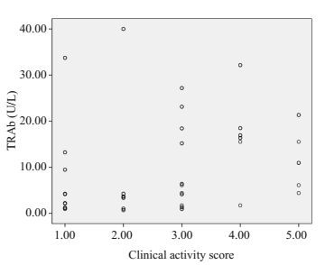 图 6 TRAb值与CAS相关性散点图 Figure 6 Scatter plot showing the correlation between the CAS and the TRAb. |