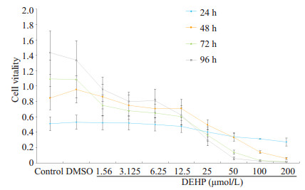 图 4 DEHP对Sertoli细胞活力的影响 Figure 4 Effects of DEHP on vitality of Sertoli cells in vitro. |